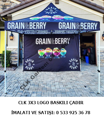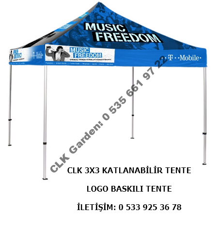 Baskılı Gazebo Katlanabilir Çadır tavan baskılı veya alın kısmı saçaklara logo reklam baskısız olarak sayısız sınırsız renklerde baskı imkanımız bulunmaktadır. Transfer baskı seçeneği ile solmaz lık garantisi verebilen tek firmayız. CLK logo baskılı çadırları imalatı sektörün lider ismi CLK fabrikalarında imalatı yapılan katlanır gazebo tente çadırları hemen satın almak veya tasarım desteği almak için 0 533 925 36 78 numaralı telefon ile bize ulaşabilirsiniz.